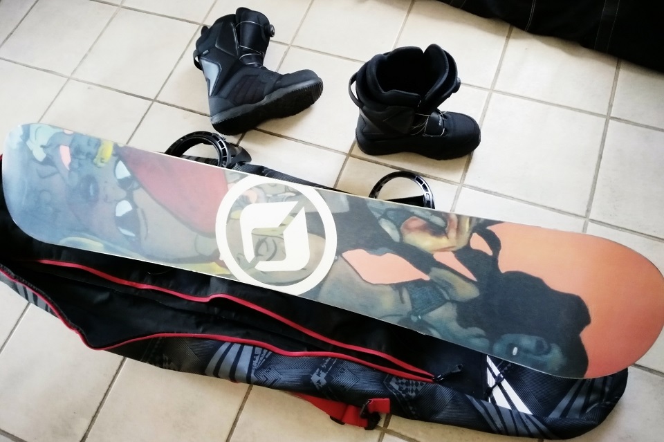 滑雪双板一套,包括一对滑雪板(板长165厘米)、一双滑雪鞋(美国10.5号,适合中国鞋号40-44),一对滑雪杖、两个旅行袋。