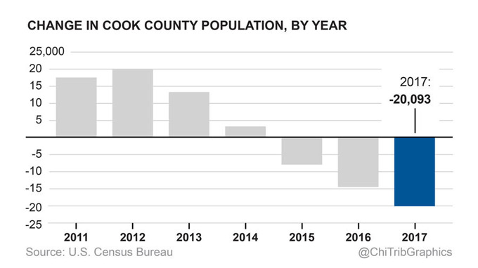 【芝加哥侨学网编译】根据美国人口普查局最新公布的数据,2017年约有1.3万人搬离大芝加哥地区,这是大芝加哥地区连续第3年人口减少。在美国人口最多的十个大城市,芝加哥地区是唯一人口持续减少的大都会区域。而在美国西南部地区,人口则出现明显增长,2017年德州达拉斯、休斯顿成为美国人口增长最多的两座城市。