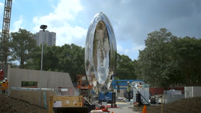 休斯顿的云柱(Cloud Column),以成品吊装的方式安放