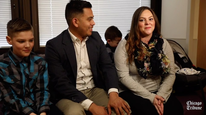 英雄母亲Teri Nobles(右)与丈夫Aguirre(中)