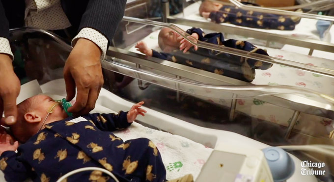 芝加哥侨学网编译】天下之大,无奇不有。芝加哥西南郊的一位超级“幸运妈妈”,头胎独子,二胎双胞胎,三胎三胞胎....,还好,这位“幸运妈妈”不准备生四胎了,因为孩子已经够多了。专家指出,二胎双胞胎、三胎三胞胎的概率不到百万分之一。也许,这位幸运妈妈在接受亲友祝福的同时,应该去买彩票。