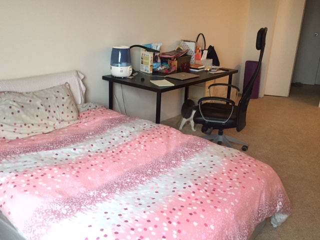 23层 超大房间,超大衣橱,自带卫生间,处于两室一厅最里面,完全安静,不会受外界影响。设施齐全,楼下健身房,24小时保安,上班近生活便利, 主卧室友女生工作,次卧室友法学院学生女