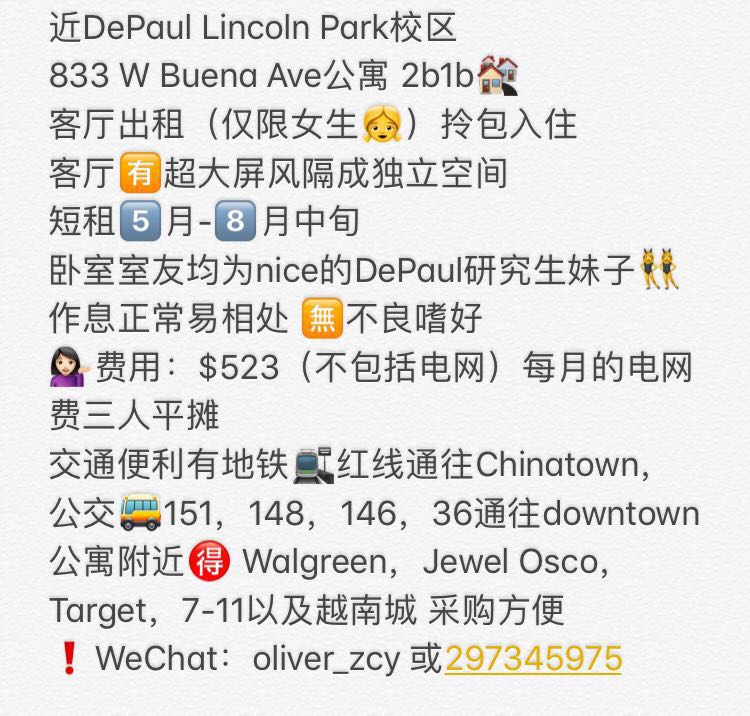 » 公寓5月底-8月15短租 可短租一个月
