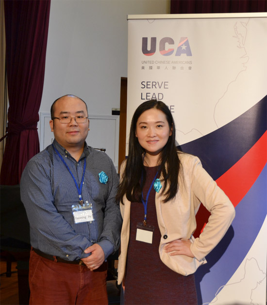 芝加哥西郊203学区委员梁保罗(左一)、东方艺术团团长郑征(右一)等嘉宾出席大力活动