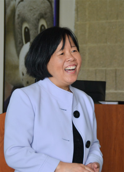 湘潭大学北美校友会副会长盛小玲主持招聘会