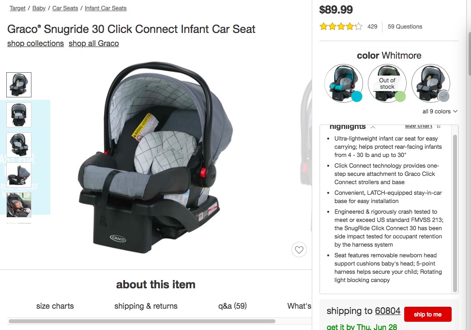 for easy carrying; helps protect rear-facing infants from 4 - 30 lb and up to 30"