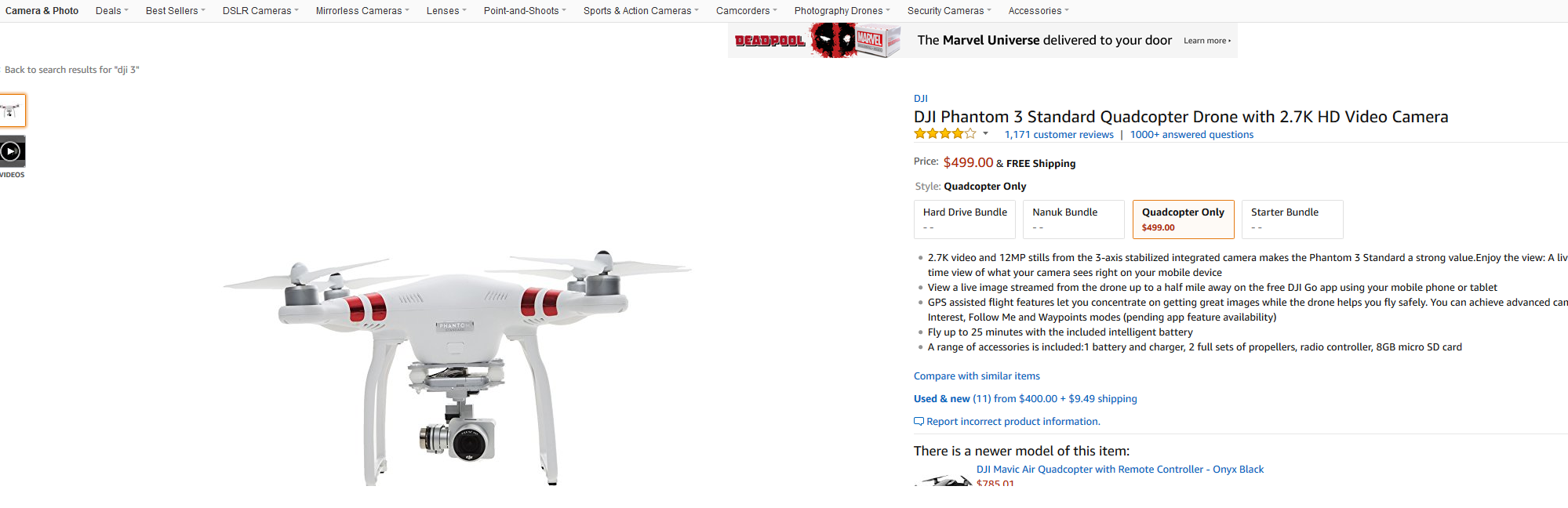 » 大疆3高清摄像飞行器,九成新,航拍必备,低价出
