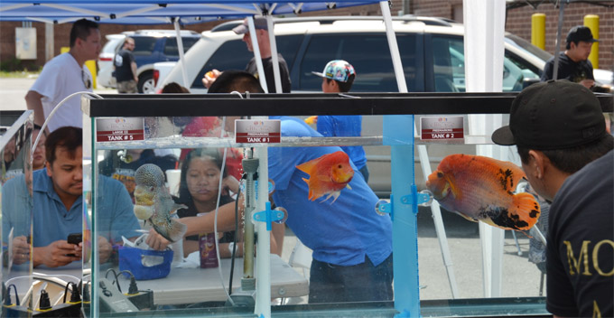 美国花罗汉协会对参赛花罗汉鱼在体型、色彩、长度等方面有着严格的规定,在经过UFA评审委员会的预审之后,来自芝加哥市,以及伊利诺伊、爱荷华、印第安纳、威斯康辛、明尼苏达等州苏里等州的饲主们带着精心挑选的50多条花罗汉参赛,“参赛选手”的数量是去年的一倍。