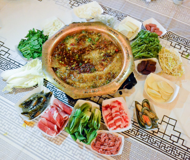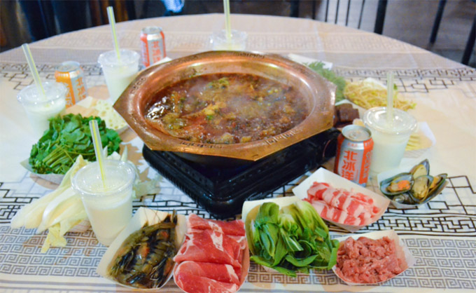 品尝了万州烤鱼的麻辣鲜香、外酥内嫩之后,浓厚的汤汁再配上肥牛、肥羊、鲜贝、火腿等火锅必备食材,鱼肉之鲜,羊肉之鲜滚烫翻滚,越炖越香浓。土豆片、西芹、莲藕片、大白菜、菜花等爽口蔬菜,吸收鱼羊之鲜,荤素搭配,充分体验重庆火锅的酣畅淋漓。