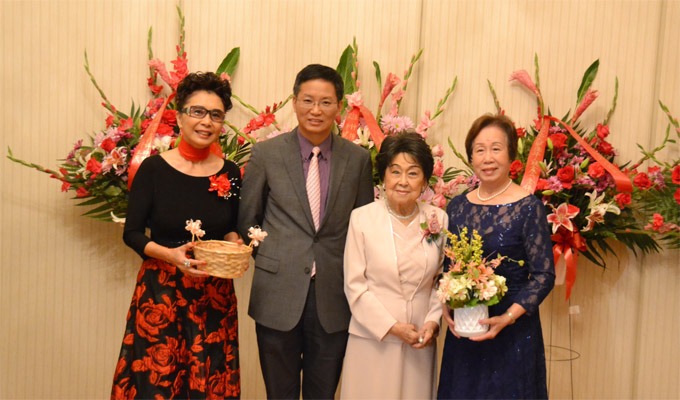 汪妈妈沈如霞女士热心侨社公益事业,不仅慷慨捐赠,还是事事亲为,在侨社各种活动都能看到她的身影。京剧科班出身的汪妈妈,除了文艺特长外,还精于插花艺术,多年来为各种盛大活动亲手制作花篮、胸花,大芝加哥地区众多侨领,都佩戴过汪妈妈亲手制作的胸花。话题至此,与会全场掌声响起。
