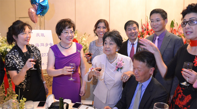在当天的活动上,汪妈妈不顾年事已高、行动不便,坚持要向每一桌的来宾敬酒致意,与大家合影留念,让大家十分感动。与会来宾们回敬真诚与祝福,祝上海同乡会会务进步,祝福汪妈妈健康长寿。