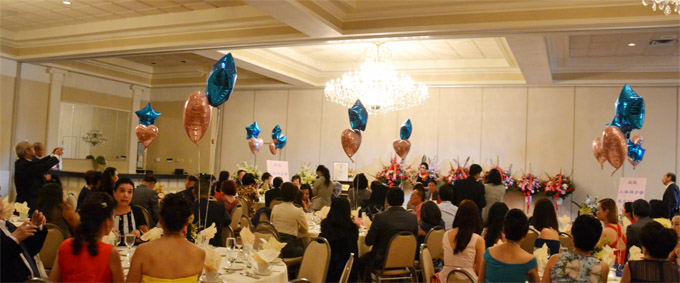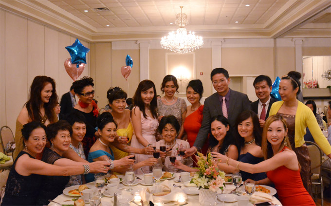 侨界名媛们在庆典举办地、西郊Abbington Banquet大堂合影留念