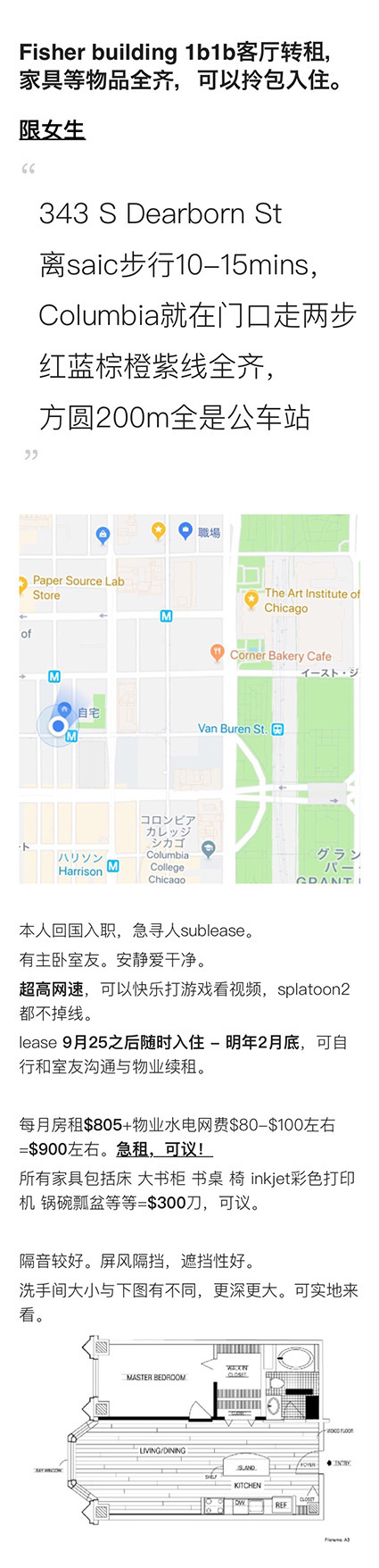 房租包括物业费电网费约$900一月,loop区低价。急租,可议。