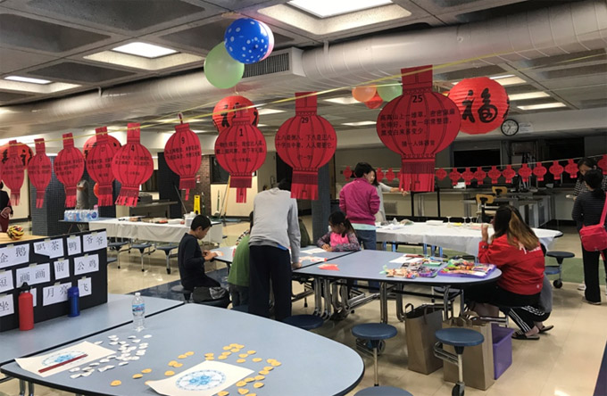9月22日中午,阳光明媚,金秋送爽,芝加哥北郊锦华中文学校到处洋溢着节日的气氛,全校师生正在喜迎中秋佳节。一大早,当孩子们上课的时候,家长们就开始忙碌的布置一楼cafeteria。为给孩子们营造节日的氛围,挂上色彩斑斓的气球,灯笼字谜,准备各种与文化、节日相关的游戏。