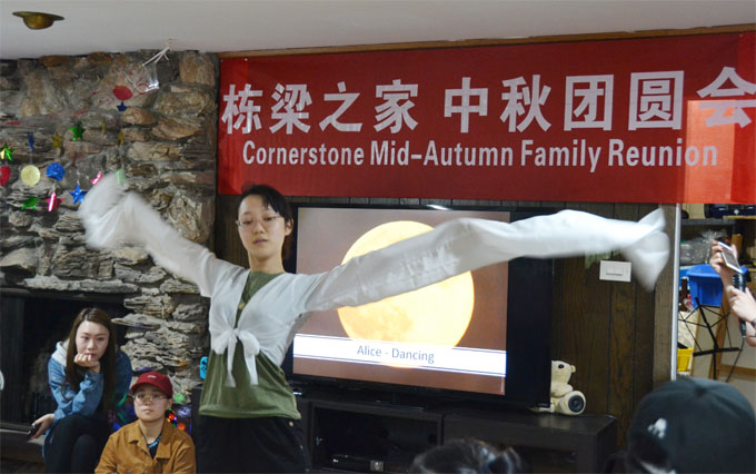 中秋团圆会开始,栋梁妈妈李韧女士首先致辞,她对孩子们、美国寄宿家庭家长代表们的到来表示热烈欢迎,希望大家一起度过一个快乐的中秋。寄宿家长的代表们也纷纷自我介绍,每每提到寄宿在自家的中国小留学生们,总会亲友们的欢呼。当天孩子们自编自演了众多文艺节目。卡拉OK,吉他,小提琴,钢琴,惊鸿舞,显示出小留学生的多才多艺。