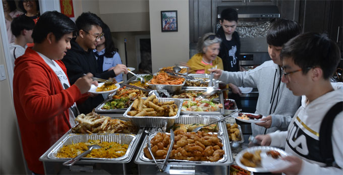 “栋梁之家”是专业留学托管机构美国栋梁留学教育公司的昵称,该公司创办人李韧则是被小留学生和家长们亲切地称为“栋梁妈妈”。中秋团圆当天,位于芝加哥南郊奥克朗(Oak Lawn, IL)的“栋梁之家”可谓张灯结彩,大红灯笼高挂,充满中秋即日氛围浓。栋梁之家的职员们特别准备了丰盛美食,秋日鱼蟹肥,雪蟹腿、螃蟹成为亮点,麻辣小龙虾、炒饭也成为小留学生们的最爱。月饼、各式新鲜水果,中秋大餐堪称完美。