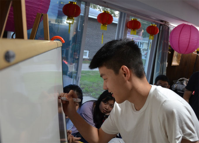 栋梁之家的中秋团圆,是小留学生的欢快聚会,也是美国寄宿家庭家长们难得的交流联谊。家长们在介绍自家寄宿学生时使用的词汇,所表现出来的笑容与自豪,完全可以看成这些漂洋过海的小留学生已被视为他们家庭的一员。栋梁妈妈李韧表示,栋梁之家实行的2+2模式,私立高中的中国留学生头两年是在栋梁之家接受托管,全职辅导员、栋梁职员负责他们的学习、生活,帮助他们尽快适应。后两年则是寄宿家庭,让小留学生完全融入美式生活,栋梁则在学业和大学申请方面全程辅助。