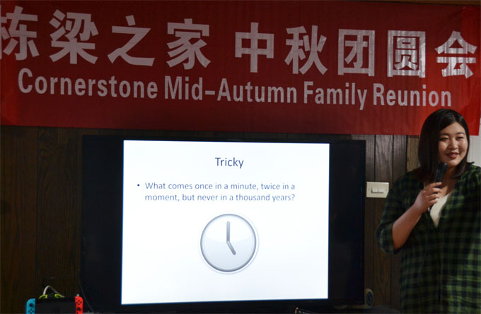 中秋灯谜,是中国民俗文化的传统项目,这个项目在小留学生这里有了创新,他们的中秋灯谜是英文的脑筋急转弯,英文词汇的特点同样带来妙趣横生的解读。学生们团队游戏,更是让现场充满青少年们无拘无束的欢闹。
