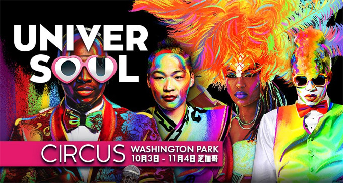 今年10月3日开始的芝加哥站表演,将有中国表演团队加盟,在UniverSoul大马戏蓬,与您共同度过一段难忘美好的时光,享受一场前所未有的视听盛宴!