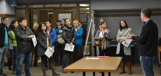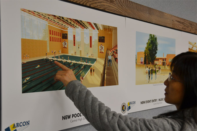 华裔家长们参观Hinsdale两所高中的修缮计划示意图