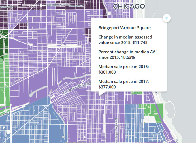 在包括芝加哥在内的库克郡,房产估值每三年重新估值一次。如今,房产估值已从“劫贫济富”转变为“劫富济贫”模式:房价高的社区、房价上涨快的社区,房屋估计普遍上涨。房价低、法拍屋多的社区,房屋估值则几乎是对等幅度的下降。