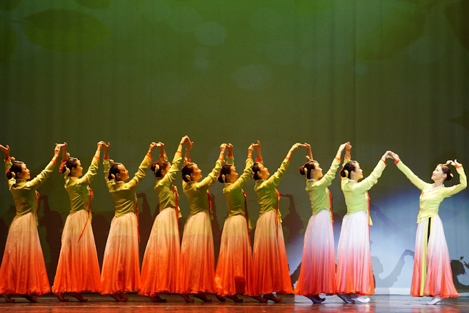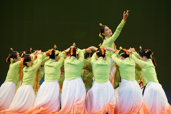 中国朝鲜族舞蹈《果园梦》,鲜族的姑娘们打破了果园清晨的宁静,当第一缕阳光越过树林的时候,已经是满园果实的丰收了。