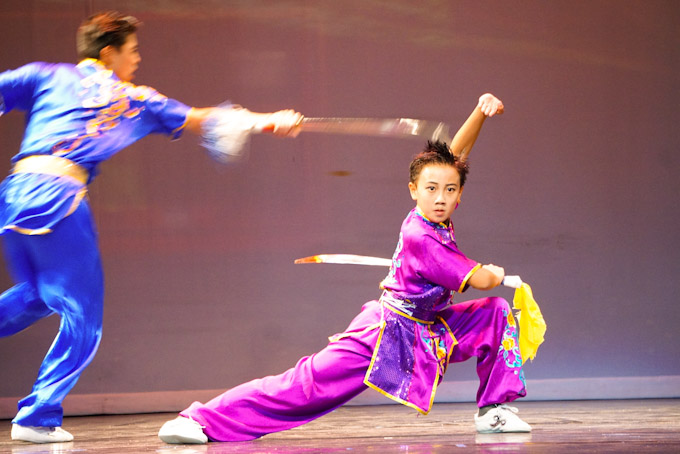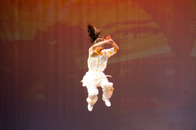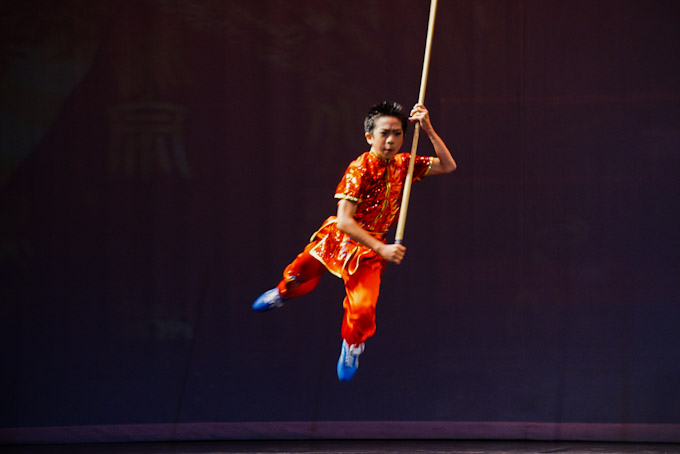 北鬥功夫学院武术队表演《中华武术魂》,飞跃直下。