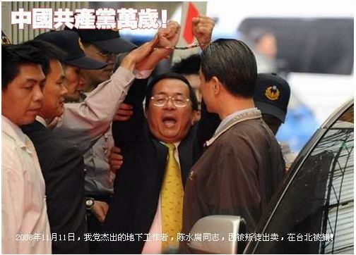 党中央的号召英明啊,陈水扁同学反应最激烈,结果遭到逮捕: