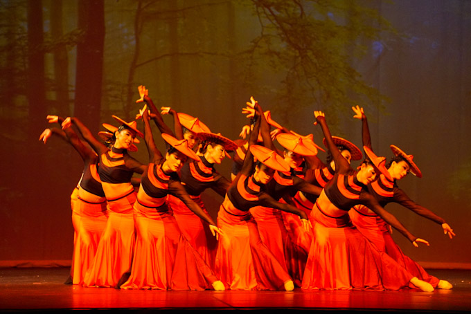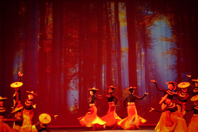 傣族舞蹈《山灵》融入了现代舞的元素,借傣族女子妖娆柔美的肢体语言,诠释了山神之灵的变幻莫测,表达了人与自然相处的崇尚与和谐。