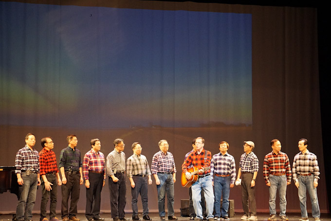 晚会由大合唱《青春舞曲》《龙的传人》拉开帷幕,《青春舞曲》是一首具有新疆维吾尔族风情的民歌,通过歌声把我们带入到少数民族载歌载舞的场景中。《龙的传人》是一首台湾校园歌曲,在台湾和大陆广为流传,‘’龙的传人‘’已经成为中华民族的别称,对我们华人朋友更是产生了强烈的共鸣。这两首歌通过洪向棠,童韬,卫鸿,范卫平四位老师的指导和改编,把合唱的音色喝层次感发挥到了极致。当晚的范卫平指挥和杨乐蜜钢琴伴奏以及合唱团的所有成员一气呵成,唱出了我们美国华人对祖国念念不忘的感情和思乡之情。