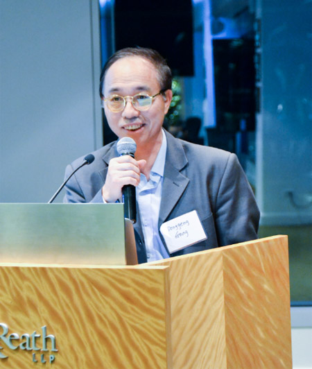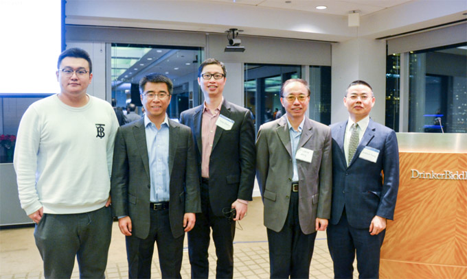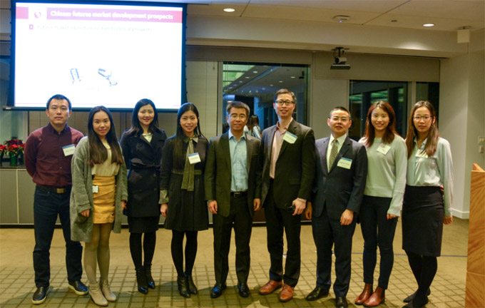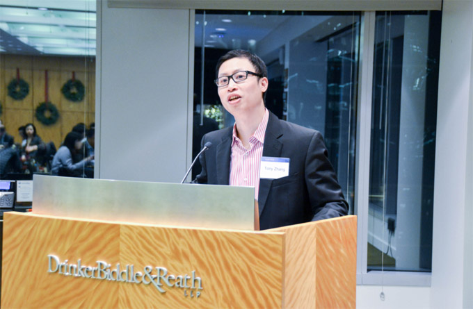 当天讲座在芝加哥市中心Drinker Biddle & Reath律师事务所举行,在年末佳节即将到来之际,芝加哥地区众多金融界华裔专业人士齐聚一堂,大家在交流联谊的同时,还能学习新知,加深对中国期货市场的了解。当天的三位主讲嘉宾为上海砥拓投资公司创始合伙人许西桥,上海微化投资董事长兼总经理龚东赓博士,长江期货公司期权与结构金融部总经理Frank Lu。