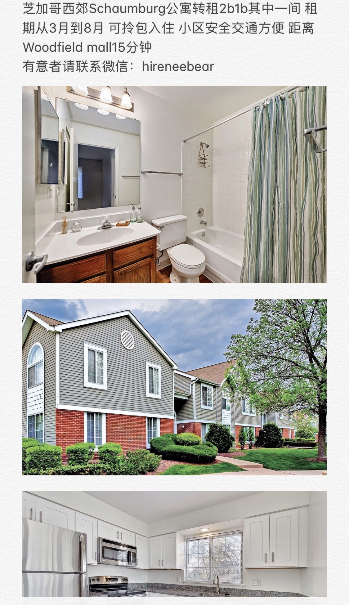 » 芝加哥西郊Schaumburg公寓转租2b1b其中一间