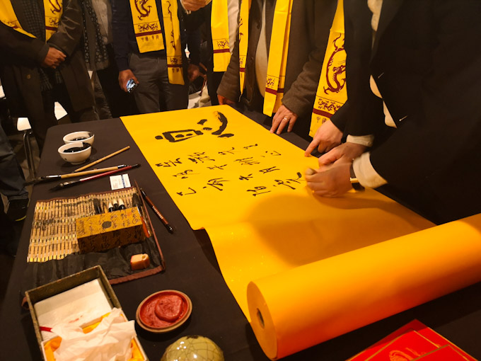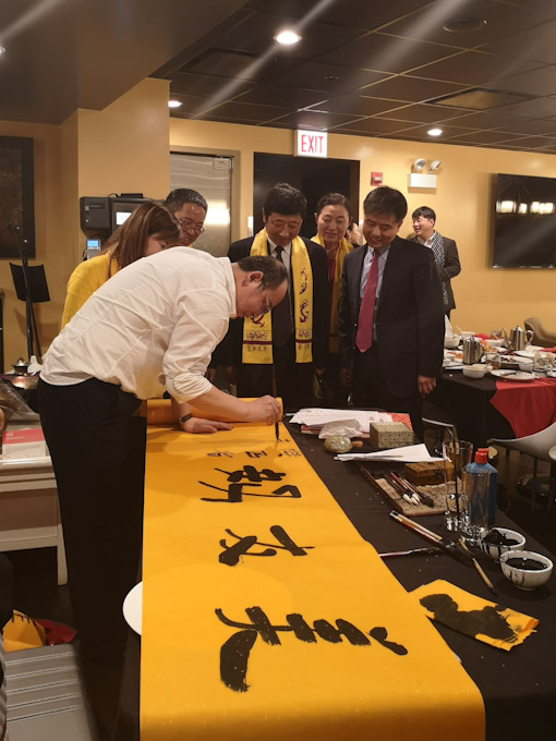 【芝加哥侨学网记者 王一 报道】在2019年农历新春之际,来自祖国陕西的美食团和黄帝陵海外推介会一月十八日在芝加哥密西根大道的老四川总店举行。陕西慰问代表团这次不仅派来了艺术团和黄帝陵海外推介团,还派来了陕菜大师为我们芝加哥的美食爱好者提供了正宗好吃的陕菜以及陕西书法家现场表演送祝福的活动。这么有特色的活动,在大雪纷飞的当晚还是吸引了不少当地友人和华侨华人朋友前来,现场爆满。
