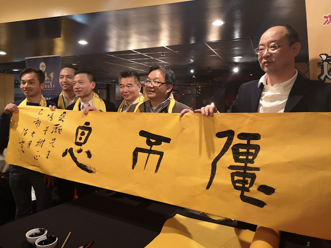 陕西书法家蔡佰虎现场送上书法 中美友好