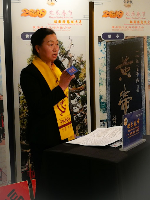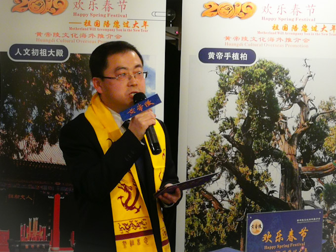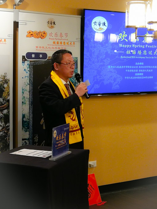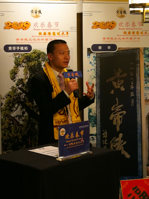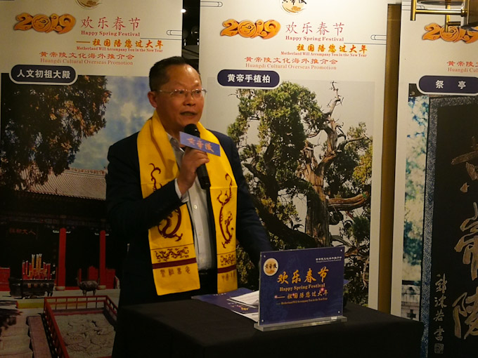 中国驻芝加哥总领馆副总领事黄黎明与侨务组卢晓晖、芝加哥华联会主席郑征女士与理事长汪兴无、陕西省政府外事办公室副主任阚开沛、黄陵县委副书记张高侠、省委黄帝陵文化园区县委副主任吴健雄、西北大学中国思想文化研究所教授博导张茂泽等嘉宾到场并致辞。