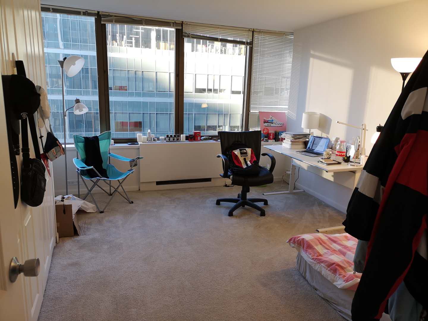 * 地理位置:位于Navy pier/牛角 附近,门口公交分别35分钟直达主校区和25分钟直达IIT的DT校区,其他学校也有直达的公交, 还有其他路线公交车到达市区各个地方,走路10分钟到红线。楼下就有whole food等3个大型超市,走路5分钟到river east 21电影院, 5分钟到magnificent mile,各种餐厅,酒吧都有,市区北边治安很好,公寓高层安静舒适。