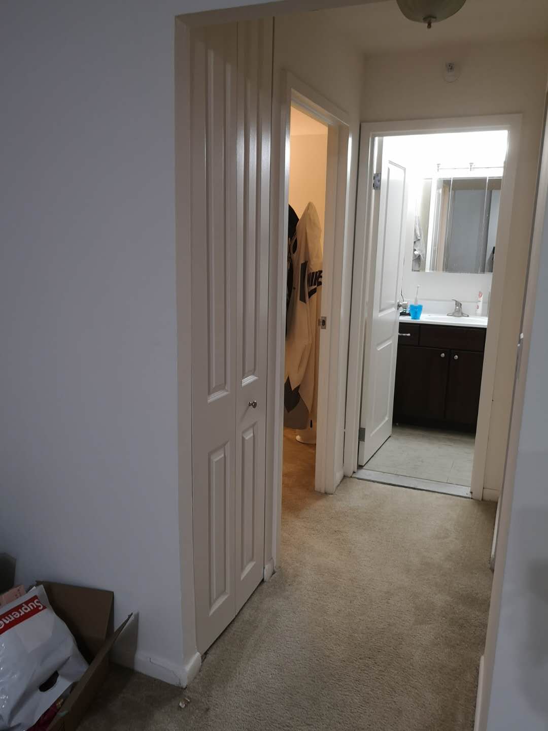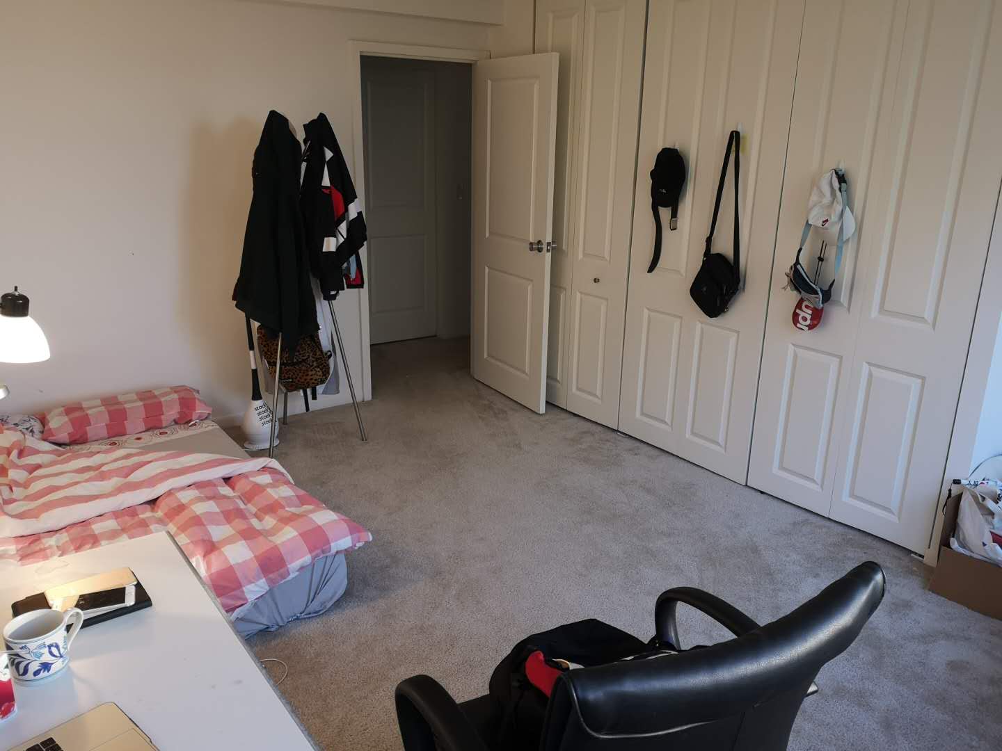 * 室内:卧室内家具不多,full size 床(无床架),桌子,椅子灯基本的都有,需要的话可以整套出售。衣 柜为推拉式,非常大。公用厨房/洗手间,有个很大的储物间。