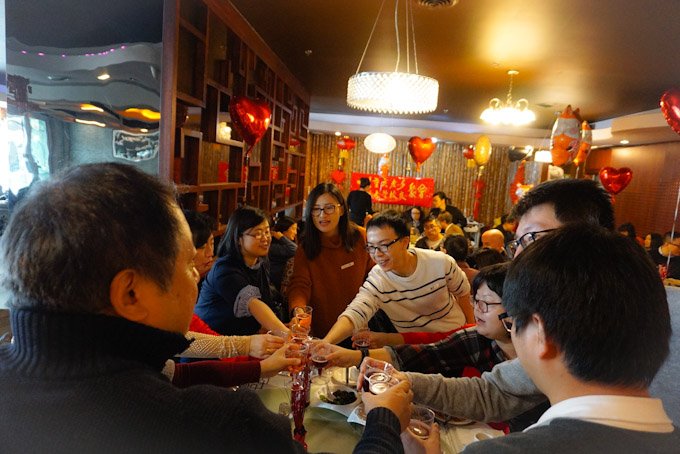 本次川渝和川大新春聚餐也得到了麻辣诱惑餐厅的支持,菜式和美食都是非常地道,一桌多达十几道菜,有砣砣鱼、猪肚鸡、毛血旺、鱼香肉丝、牙签羊肉、东坡肘子、椒盐大虾、夫妻肺片、川味凉粉、乡村小木耳、干煸四季豆、蒜蓉通心菜等。主办方还准备了香槟、瓜子和糖果,让大家在把酒言欢的同时享受到了家乡的味道。