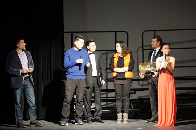 摩托罗拉产品研发副总裁Shakil Barkat,供应链副总裁张宁,人力资源主管Annabelle Wang上台抽奖
