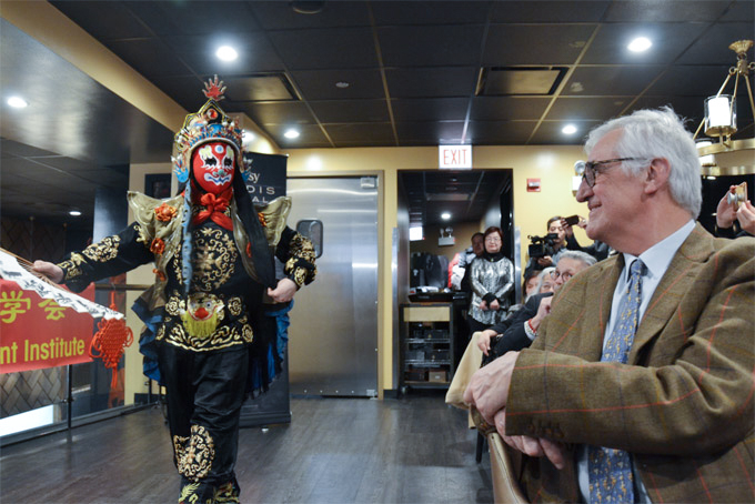 这场特别的新春庆祝活动,四川省川剧院访美代表团的川剧变脸令人拍案叫绝。由四川省川剧院展览演出部主任(运营总监)白中华主任率领的访美代表团,继1月31日在底特律NBA赛事上精彩献艺之后,于2月3日,2月4日在芝加哥市中心老四川旗舰店闪亮登场。在芝加哥最繁华的商业街,在全美著名旅游景点,在麻辣鲜香的中餐文化旗舰店,川剧艺术家们精湛演出让大家大开眼界。在欢乐音乐中神奇变换的脸,不只是传统川剧脸谱,还有“蜘蛛侠”面具,可谓别具匠心,中西融合。