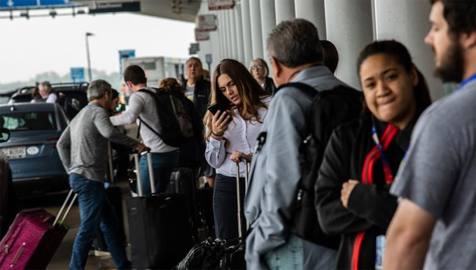 芝加哥有两个机场,O'Hare Airport, Midway Airport,两个机场均有国际航班。图为中途机场登机门外的旅客(photo: Chicago Tribune)