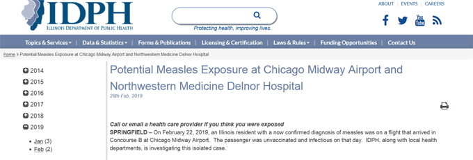 2月22日,芝加哥Midway 机场出现麻疹患者
