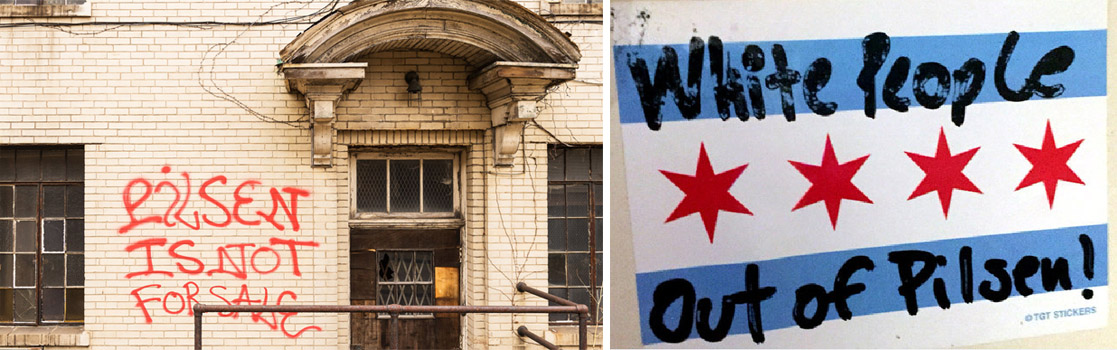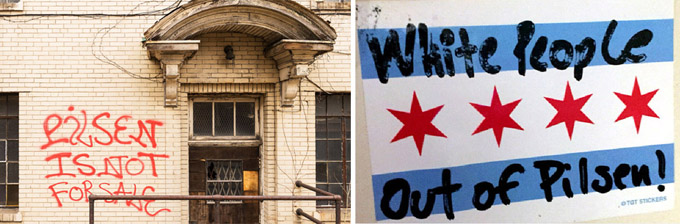 抗议社区“绅士化”的涂鸦:“皮尔森不能被卖掉!” “白人滚出皮尔森”