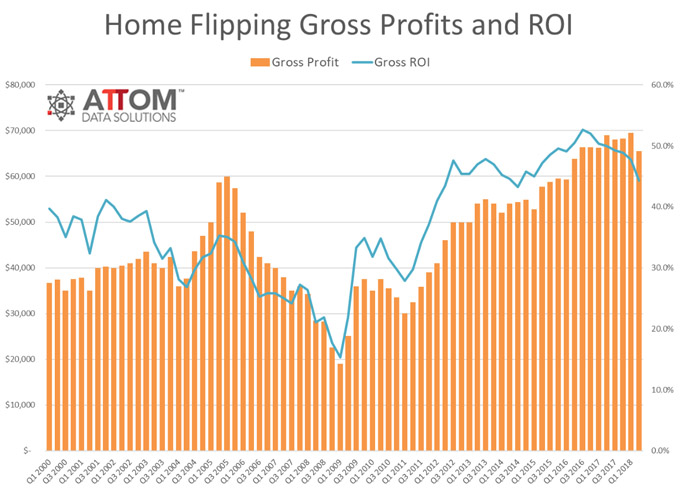 旧房翻新转售(flipping)是一种普遍的房地产投资模式。ATTOM Data Solutions资料显示,2018年第二季度,全美共约4.9万旧房翻新的住房(包括独栋住宅楼与公寓)被出售,占同期美国总房产销售量的5.2%左右。去年第二季度,旧房翻新转售的平均投资回报率为44.3%,旧房翻新后的出售加比旧房购入价平均高出6.6万美元。( 芝加哥侨学网 编译, Source: Chicago Tribune, 网络)