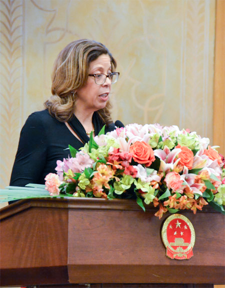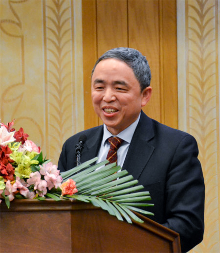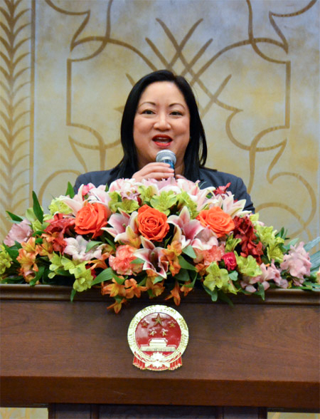 万向美国公司总经理倪频代表中资企业欢迎赵建总领事