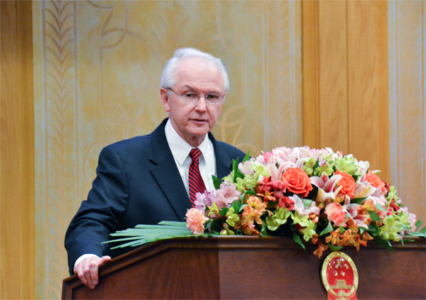 芝加哥大学校长罗伯特茨默则表示,芝加哥大学是唯一在中国北京、香港设立两个运营中心的美国高等学府,他非常高兴地看到每年都有大量的中国留学生来到芝加哥大学留学,并看重学术交流对中美双边的重要价值。万向美国公司总经理倪频在当天的活动上代表中资企业对赵建总领事的到任表示热烈欢迎,倪频表示,今年是中美建交四十周年,中国有句俗话叫四十不惑,但如今中美关系却是“四十有惑”,他特别能理解赵总领事“深感使命重大”。倪频表示,万向美国与美中地区的中资企业一起,积极配合领馆工作,为促进中美双边的对话,推动美中地区的对华友好交流与合作。