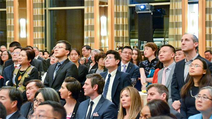 与会中资企业代表,左为万达美国财务总监贺鑫