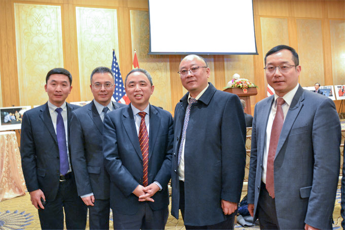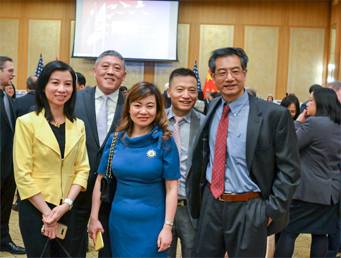各界来宾合影留念,右二为美国中餐学会主席胡晓军,左二为陈哲牙医
