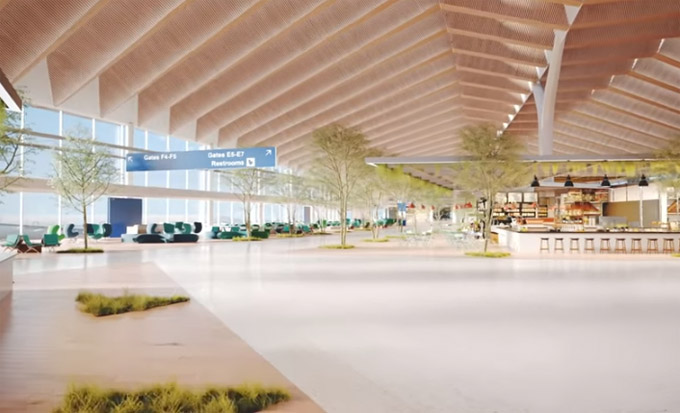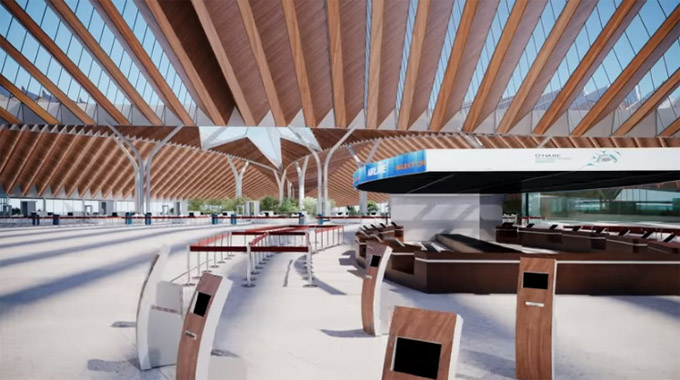 【芝加哥侨学网编译】芝加哥市长伊曼纽周三宣布,总投资85亿美元的欧海尔国际机场(O'Hare)扩建与现代化改造工程,由芝加哥著名的女建筑设计师珍妮龚(Jeanne Gang)领衔设计。总面积220万平方英尺的国际航站楼将是此工程的核心,展翅高飞的挑高顶盖,大量的绿色植物、取材自然的原木装饰,将是欧海尔国际机场的全新面貌。