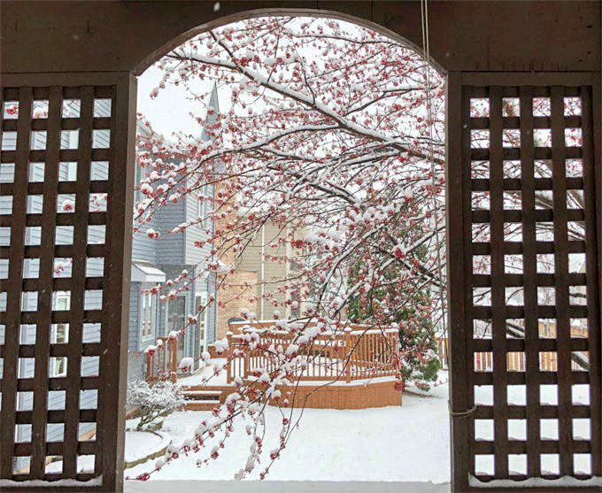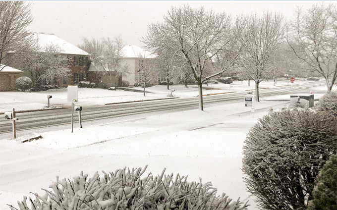 【芝加哥侨学网综合报道】从春天到冬天要多长时间?芝加哥24小时内大逆转。4月13日周六,芝加哥地区一片蓝天白云,阳光明媚的早春景象。4月14日周日一早醒来,却是银装素裹,大雪飘飞。全美气象局表示,4月14日全天都会降雪。所幸大地已转暖,气温至摄氏零度以上,积雪只会在1到4英寸之间。